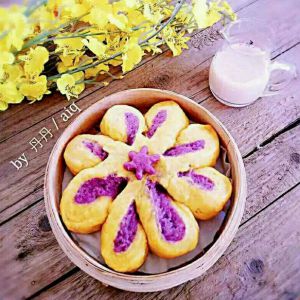 紫薯泥加入面粉酵母揉成光滑的面团。