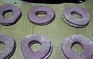 揉好的面团醒发半小时,排气,二次醒发15分钟,擀开面团,用模子磕出胚子,放入烤盘,最后醒发30分钟