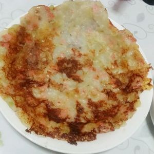 平底锅加热,转小火,刷油,把土豆泥平铺在锅里慢慢煎,我加的面粉少,所以不好翻面,大家可以稍微多加点面粉(50克左右)。