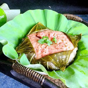 包起来,上笼蒸1小时(因为时间长,可以包上2层荷叶)