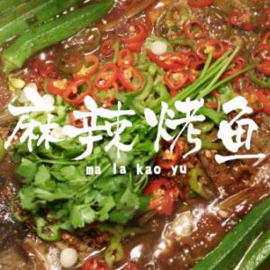 鱼身均匀抹上油、豆瓣酱、蒜末