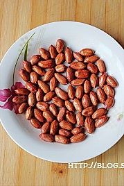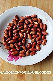 花生米放一盘子里,倒一点油翻一下,让每颗花生米都沾上油