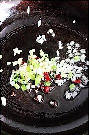 下葱姜和大蒜末煸香