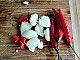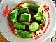 取一个保鲜盒洗净无油,放入泡椒水,泡椒,泡姜,和红辣椒,蒜瓣。
