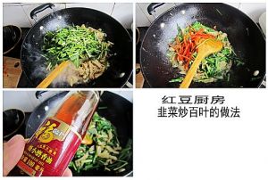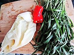 2·韭菜摘洗干净切段,红椒切丝备用。