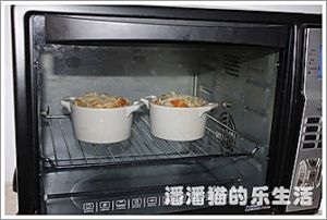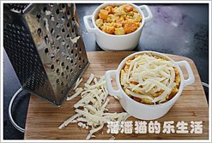 将烤碗放入烤箱中下层180度烤7-8分钟,奶酪上色后就可以了,拿出来的时候一定要贷手套,小心烫啊。
