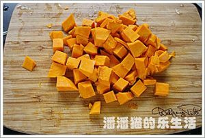 南瓜去皮切成块。