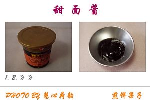 2.舀1汤匙李锦记甜面酱在小碗里备用。