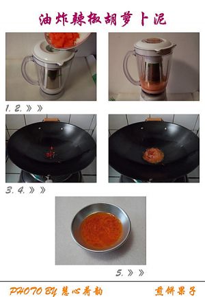 5.制作好的油炸辣椒胡萝卜泥倒入小碗中备用。