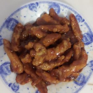 锅中留底油,烧热后放入番茄酱炒出红油,倒入勾芡汁,待汤汁变得粘稠红亮,倒入里脊,快去翻炒上色均匀,出锅。