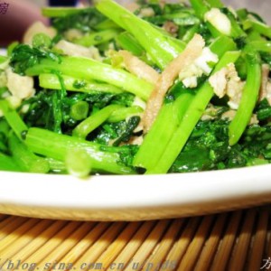 大火爆炒,然后放少许盐和酱油,最后撒上蒜末就可以出锅了。