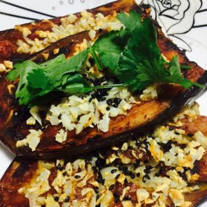 把调好的汁均匀涂抹在茄子表面然后撒上黑胡椒碎放入烤箱烤制(烤制时间根据自己烤箱而定)