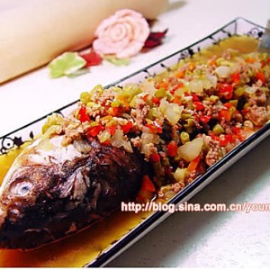烧开后,放入煸好的鱼和葱末,大火烧开后,中火烧二十分钟,改大火稍微收干汤汁即可