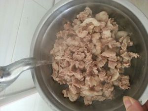 用凉水反复冲牛肉,把脏的东西都冲掉