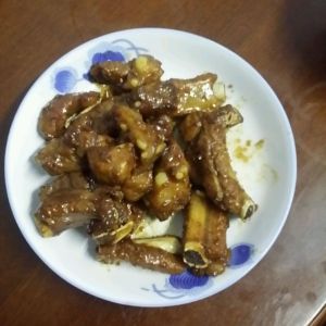 热锅放油,爆香姜片蒜片,放入排骨炒至微黄。