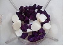 紫薯洗净去皮,切小块;山药洗净去皮,切小块。