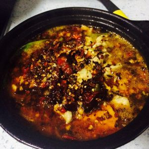 红汤烧开,把腌制好的肉片放入锅中煮熟,不需太久,基本熟了就可以了,煮久可能会老。将肉和汤倒入备好碗或者小锅里。