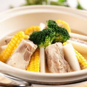 水来了放入排骨,炖一个小时后,加入玉米和莲藕