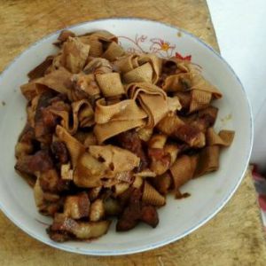 加适量开水将下千张,大火烧开,文火炖30分钟加适量盐,再炖10分钟收汁即可