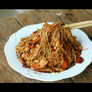 步骤一:煮面,根据自己的胃口煮适量的面条,不要浪费;面条再沸水中煮一下就捞出来过凉水沥干;炒锅加油,将沥干的面条小火翻炒炸一下备用,这样小火炒过后的面条会有些微炸过的香酥口感,所以油还是要放多一点儿