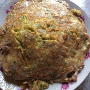 苦瓜丁加入鸡蛋,放葱姜沫,打匀,入锅成型。