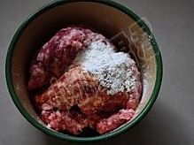 猪肉馅加入蒜姜水,淀粉、料酒、生抽、芝麻油、盐搅匀