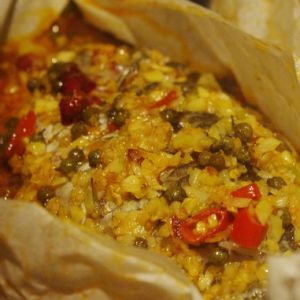 料汁浇入包裹住的鱼身上,再将油纸包裹严实~