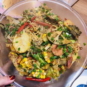 1. 准备好喜欢吃的配菜,烧水煮5~8分钟。