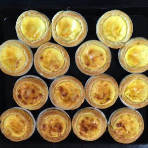 把挞水倒入,七八分满,这个量正好15个。烤箱220度,20分钟上下火,中间层。再用上火烤5分钟上色。