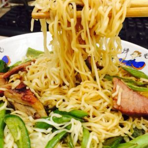 先放蒜末与四季豆翻炒,炒至八成熟后加少许盐,倒入叉烧一起炒一分钟后加入面条,加蚝油、辣椒酱翻炒。粘锅喷一点点开水,不要太多哟。