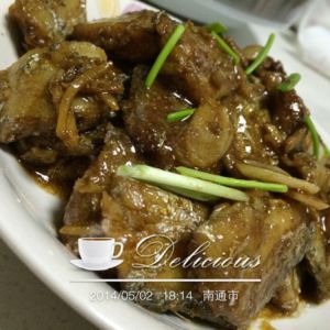 锅中留底油,下姜丝,葱丝,蒜片煸炒,放入炸好的带鱼,倒入酱油、醋、白糖、料酒翻炒一下。