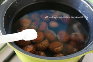 逐只捞出栗子,趁热剥去壳和内膜备用。