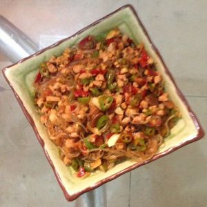 加高汤或适量水,下粉丝拌炒,煮四五分钟,根据口味下盐和鸡精等调料。