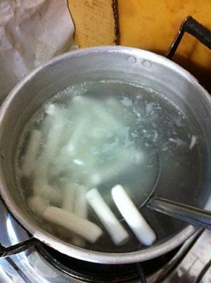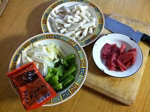 备料,主要就是年糕条和甜辣酱,其他的随便自己喜欢