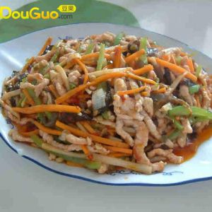 把猪里脊丝用精盐、绍酒、湿淀粉拌匀。