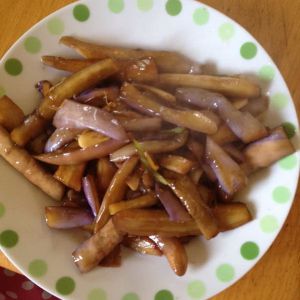 茄子过油,炒软后,把葱姜蒜放入,然后将配料调成汁倒入锅中。