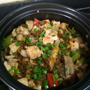 倒到白菜粉丝的砂锅里,这时候我加了半碗水,因为感觉汤汁不够,盖上盖子