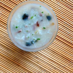 砂锅加水烧开 放入大米 放入皮蛋和瘦肉 加一半的姜丝和葱 搅拌 防止底部粘锅 煮30—40分钟 加入令一半姜丝和葱就可以出锅了