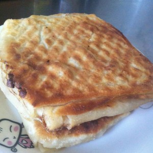 将面分成几个剂子,擀成大方形,比包饺子的面稍微厚点即可。然后按照图中方法抹葱油,把饼一折一折叠起来。最后放电饼铛里,按到大饼那一栏,五分钟就好了。电饼铛不用抹油,因为饼里已经有油了,再抹很油腻。
