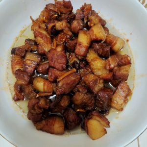 加入1大碗清水,加入盐,蚝油,开锅后,40分钟到1个小时,至五花肉软烂