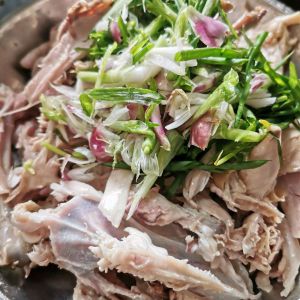 把葱丝+芝麻油+盐焗鸡粉适量,调匀即可