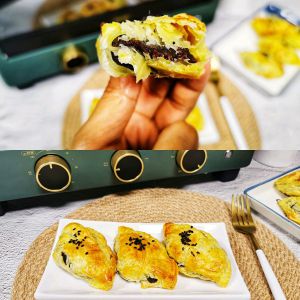 送入预热好的电烤箱,190度烘烤25分钟左右。烤至表面金黄色边可出炉了!