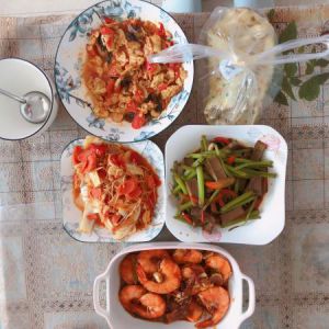 放油炒虾,虾红乘出,放葱姜蒜爆炒,放虾爆炒放入汤汁,加香叶,大火收汁
