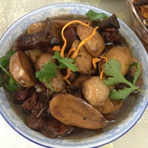 红烧肉倒入锅中,化了后加芋头,不时搅拌,不要弄碎红烧肉,25分钟左右盛出。