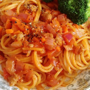 烧开水,把意大利面煮八分钟,然后捞出来,沥干。