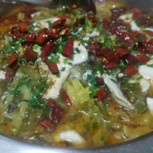 锅下油,姜片,蒜片,泡椒炒,炒出香味,加酸菜翻炒,之后加水煮。加盐,鸡精,味精,白糖,白醋。下鱼片煮。好了起锅。