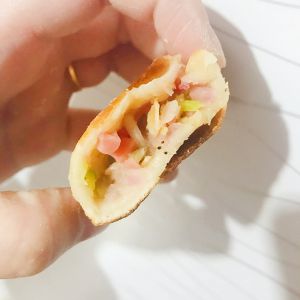 面的部分我用的是烫面,吃着比较软。包好后煎至两面金黄即可。