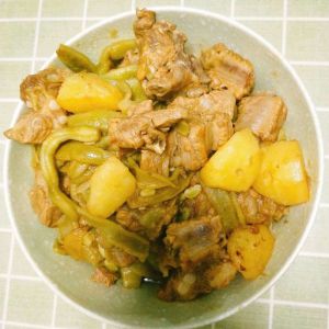 最后一步装碗这道排骨土豆炖豆角就做好了