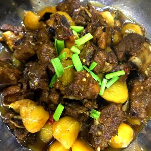 榨至外皮结壳,捞出备用(土豆本身含有淀粉,要放在排骨后面在炸)
