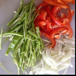 洋葱,青椒,红椒,胡萝卜各种切丝